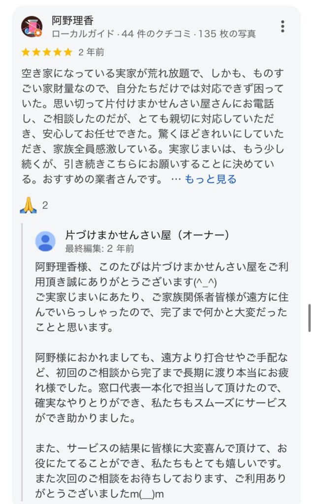阿野理香様、このたびは片づけまかせんさい屋をご利用頂き誠にありがとうございます(^_^)
